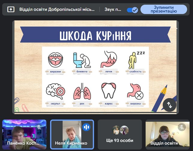 З метою підвищення обізнаності підлітків про шкідливі наслідки вживання тютюну та нікотину ДУ «ДОНЕЦЬКИЙ ОЦКПХ МОЗ» здійснюються інформаційно-просвітницькі заходи з профілактики куріння. Зокрема, з травня по грудень 2024 року для учнів 8-11 класів закладів загальної середньої освіти Донецької області фахівцями філій ДУ «ДОНЕЦЬКИЙ ОЦКПХ МОЗ» в онлайн форматі проводилися вебінари з презентацією «Знай про ризик – правда про куріння, яку варто знати».👇