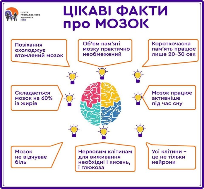 📅З 10 по 14 березня проводиться Всесвітній тиждень знань про мозок. Ці заходи, які щорічно відбуваються у другій декаді березня, мають сталу традицію. Мозок — це надзвичайно важливий орган, який регулює всі функції нашого тіла. Він керує нашими думками, пам’яттю, емоціями, відчуттями, рухами, зором, диханням, температурою тіла, голодом та безліччю інших процесів, які забезпечують наше існування. Це не просто “центральний процесор”, а орган, що надає нам здатність бути людьми — відчувати, мислити та пам’ятати. Мозок складається з двох півкуль: лівої, яка відповідає за логічне мислення та аналіз, і правої, що керує творчими та інтуїтивними процесами. Це справжній витвір природи, який дозволяє нам не лише думати, а й створювати, мріяти та пізнавати світ навколо нас.