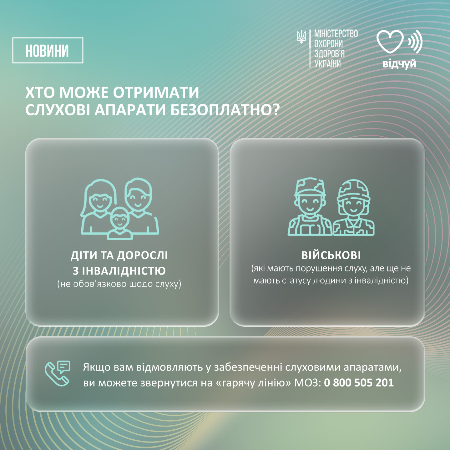 Крім того, МОЗ разом із ГО «Відчуй», розробили зручний путівник, у якому покроково описано, як отримати слуховий апарат у вашому регіоні. Його можна знайти за посиланням: https://bit.ly/4kmRsk0