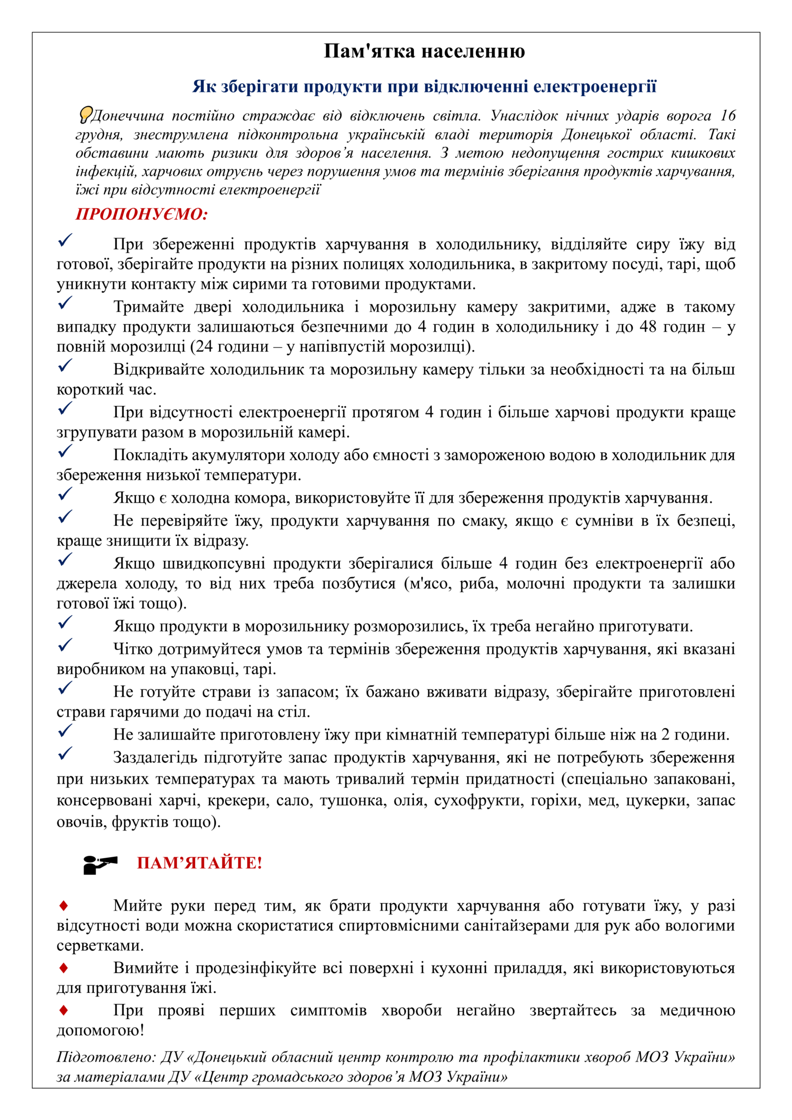 Як зберігати продукти при відключенні електроенергії: пам’ятка населенню
