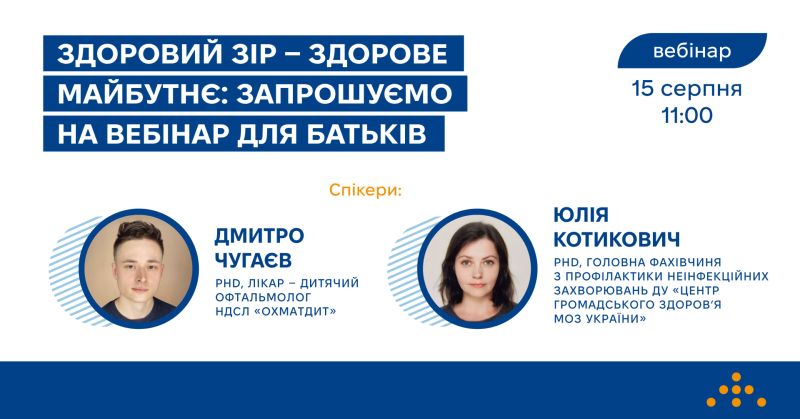 15 серпня запрошуємо батьків на практичний вебінар, присвячений профілактиці захворювань зору у дітей.
